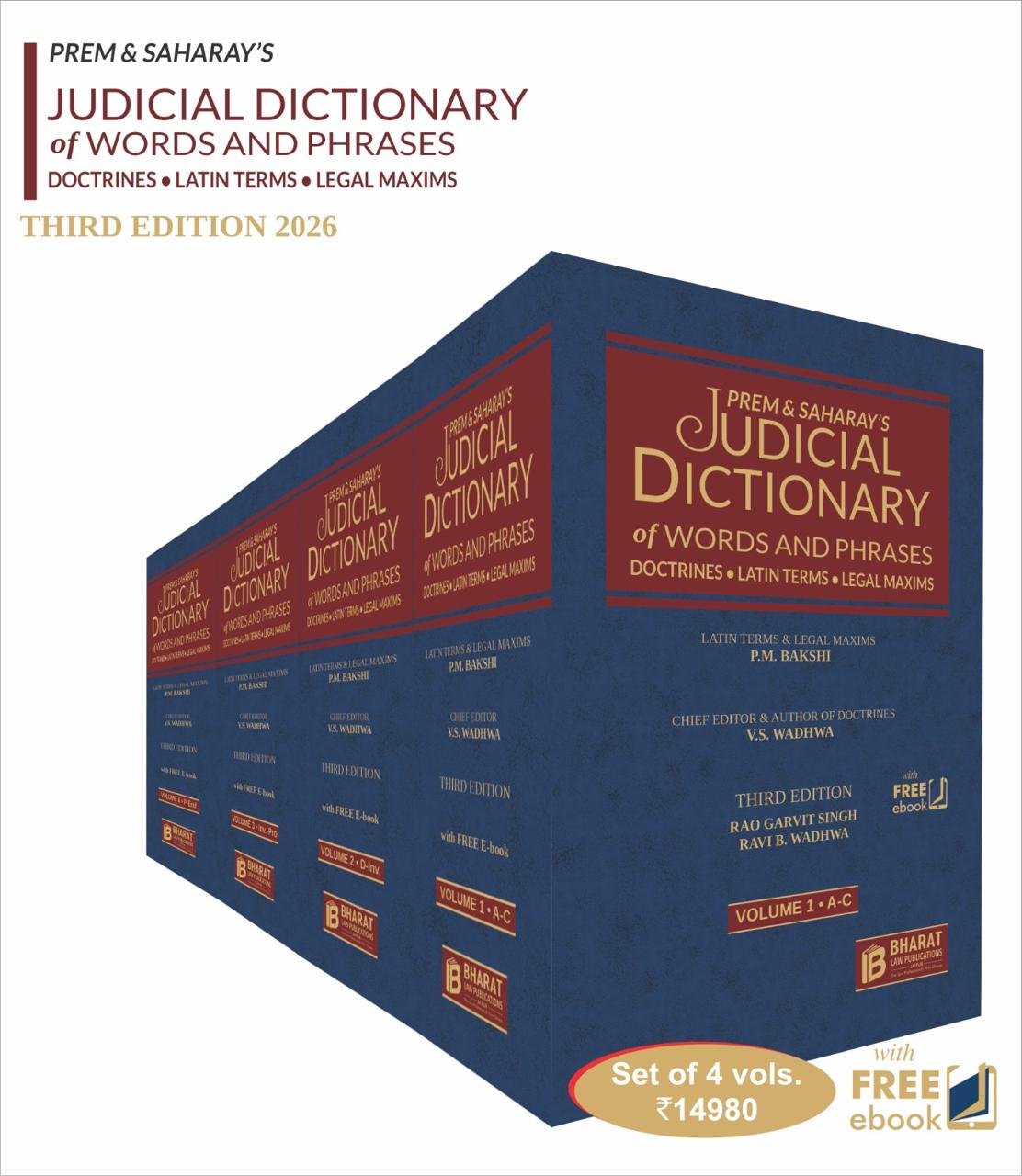 Judicial Dictionary of Words and Phrases, Latin Terms and Legal Maxims by Prem and Saharay (Set of 4 Vols.) with Free E-Book – 3rd Edition 2026